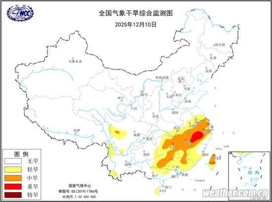 中央气象台2025年12月10日10时发布未来十天全国天气趋势预报。详细