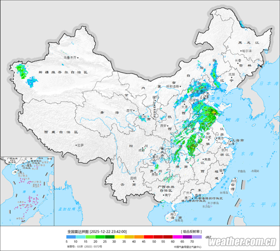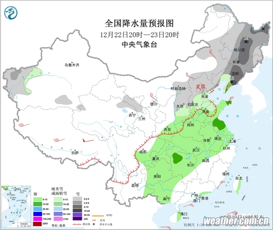 中央气象台2025年12月22日18时发布未来三天全国天气预报。详细