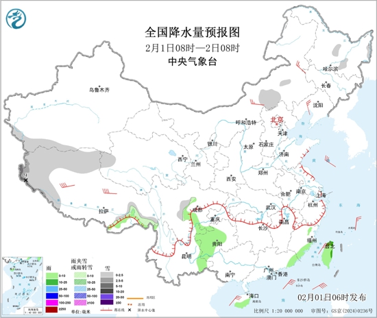 中央气象台2026年02月01日08时发布未来三天全国天气预报。详细