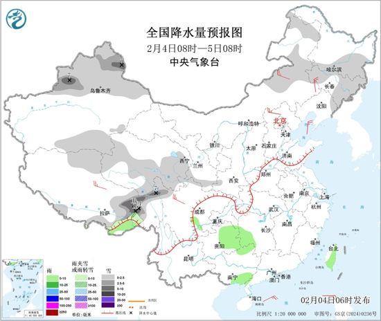 中央气象台2026年02月04日08时发布未来三天全国天气预报。详细