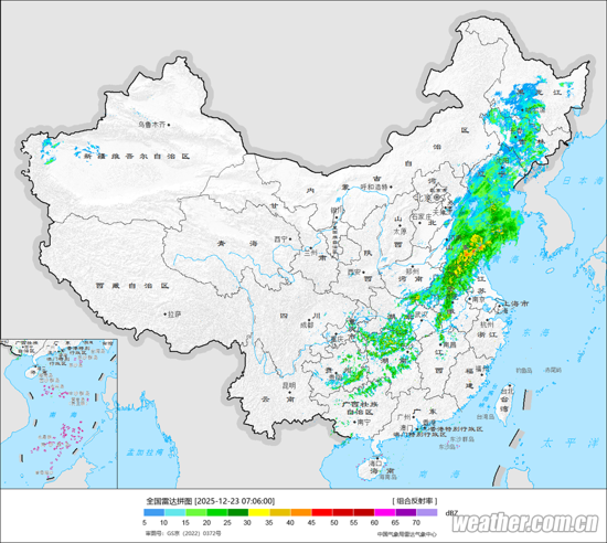 中央气象台2025年12月23日08时发布未来三天全国天气预报。详细