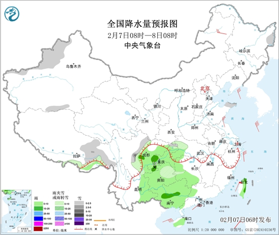 中央气象台2026年02月07日08时发布未来三天全国天气预报。详细
