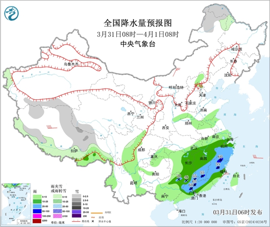 中央气象台2026年03月31日08时发布未来三天全国天气预报。详细