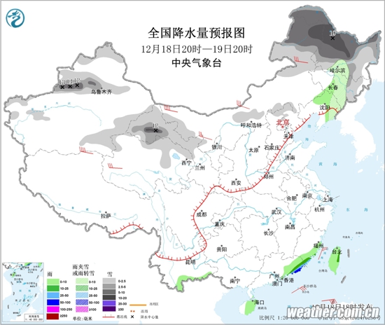 中央气象台2025年12月18日18时发布未来三天全国天气预报。详细