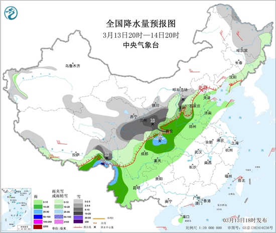 中央气象台2026年03月13日18时发布未来三天全国天气预报。详细