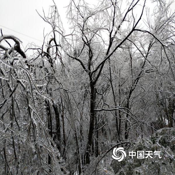 2019年02月21日 09:52近日,大别山主峰白马尖出现冻雨天气,呈现“千岩琉璃,万树晶莹”的美丽景象。图为被冻雨覆盖的树木。(摄:陈建)
