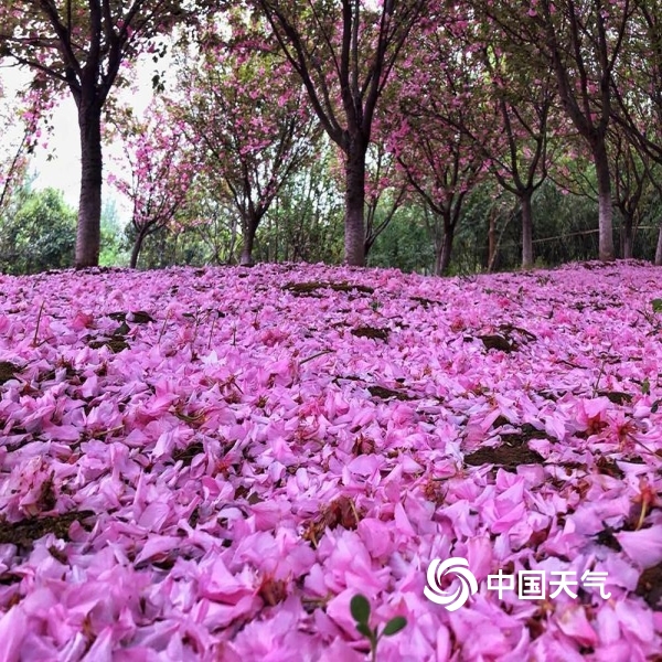 安徽皋城六安 落樱缤纷美景如“毯”(1/6)