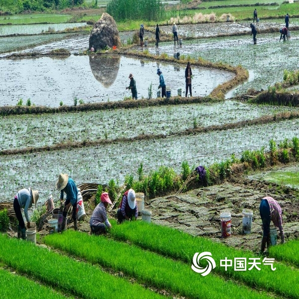 2019年05月13日 09:23中国天气网讯 安徽黟县正值水稻种植时节,农民们面朝黄土背朝天正在辛苦劳作。(摄 程大亮)