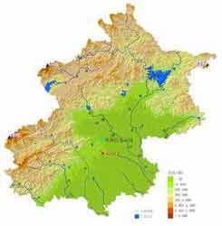 夏季降水量约占年降水量的3/4。夏季降水空间分布与全年类似:东北部和西南部山前迎风坡地区为相对降水中心,在450~500毫米之间,西北部和北部深山区少于400毫米,平原及部分山区在400~450毫米之间。