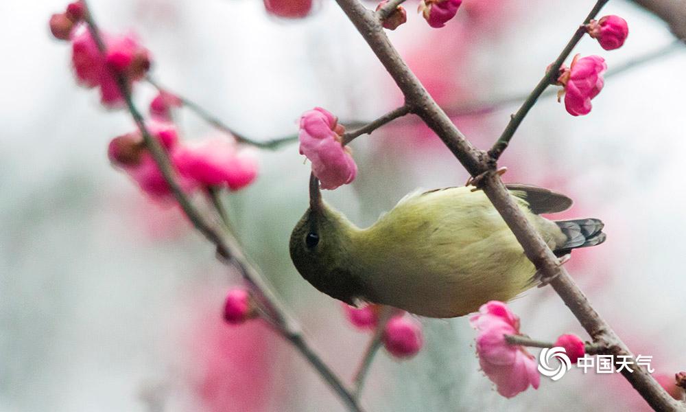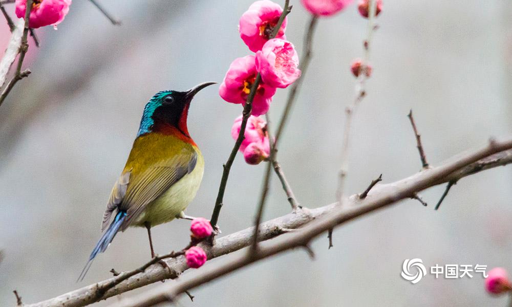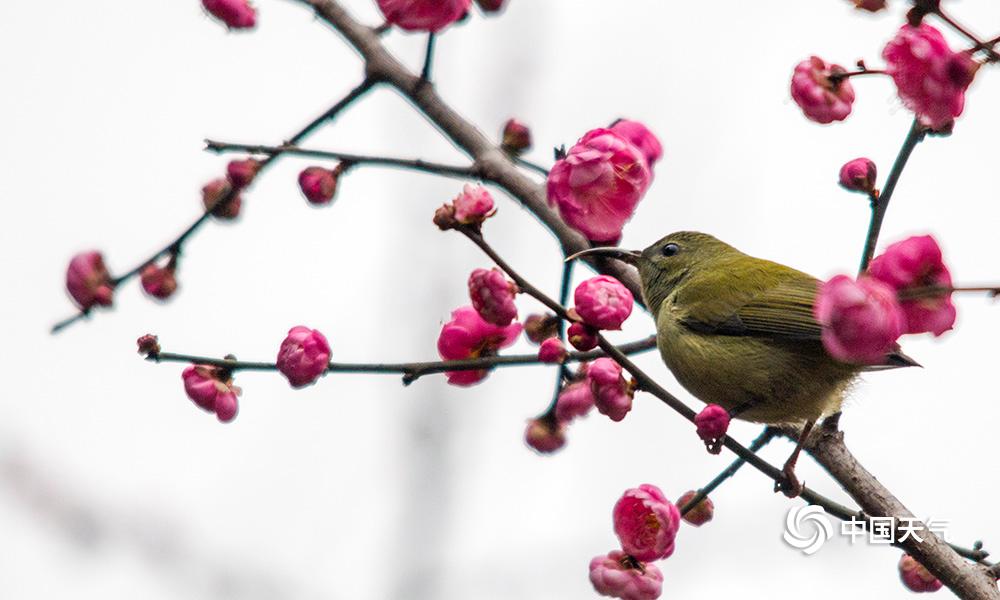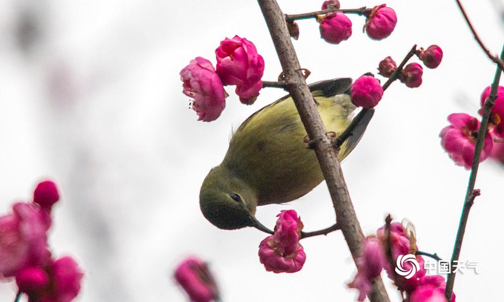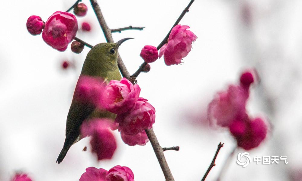 <p>3日,重庆红岩村的红梅绽放,太阳鸟驻足枝头,喜迎新年。(凌舸智/摄)</p>
