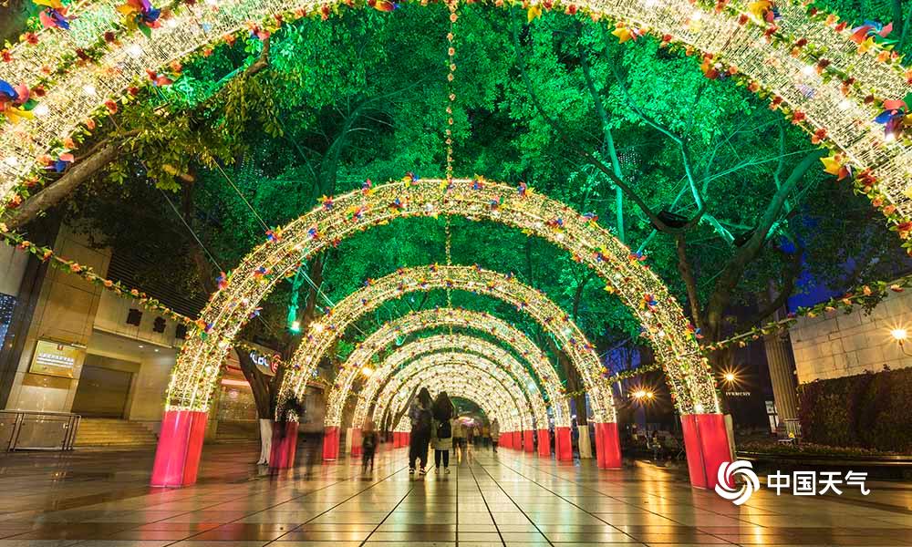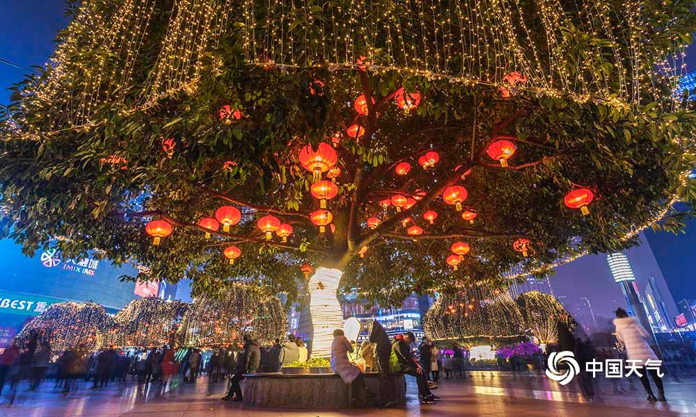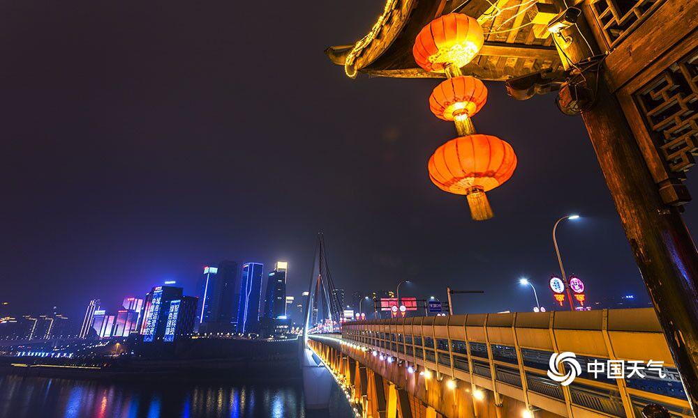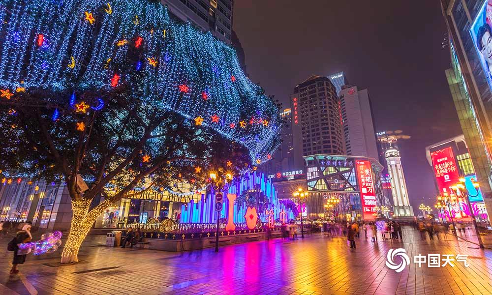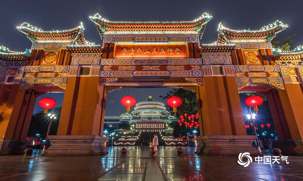 27日,重庆主城解放碑、人民大礼堂、洪崖洞等都市旅游热门地在彩灯的烘托下,显得格外绚烂。(凌舸智/摄)