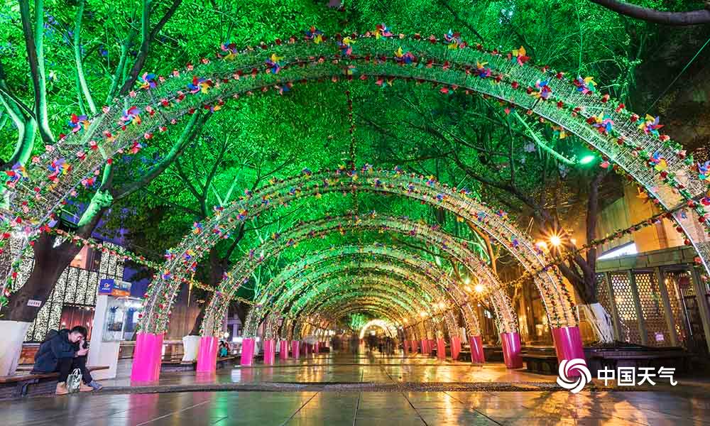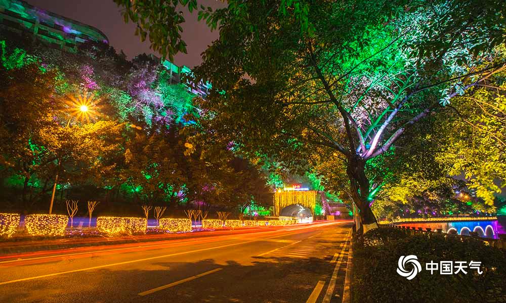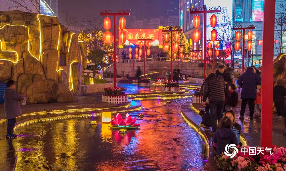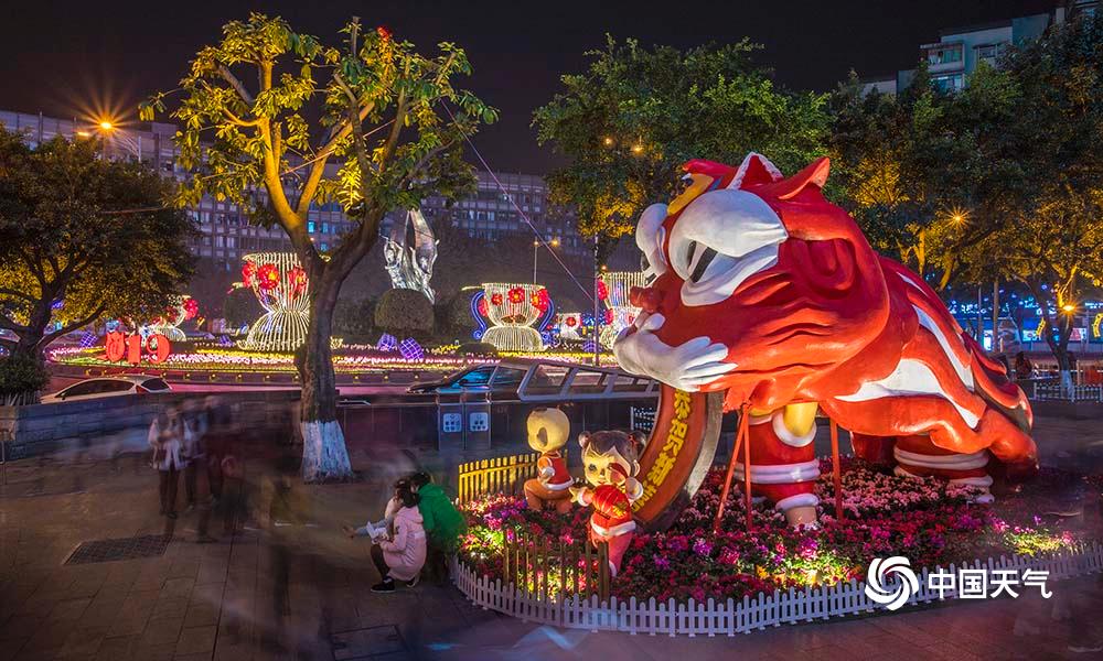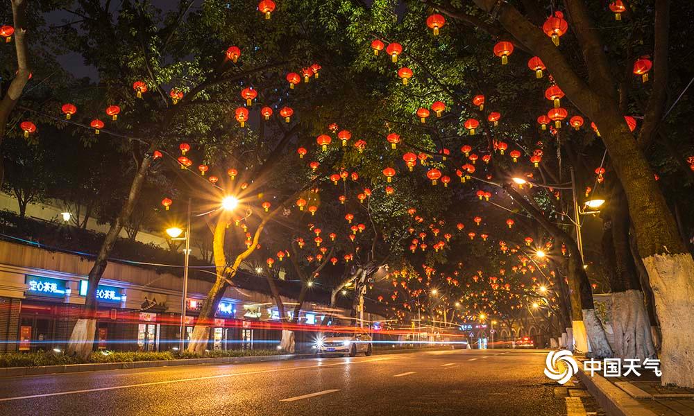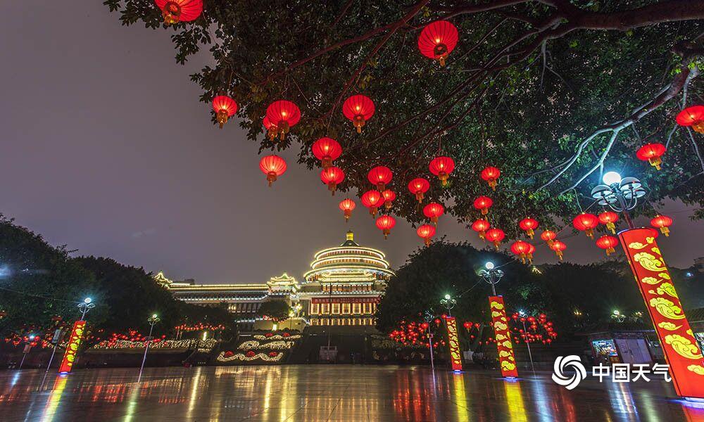 27日,重庆主城解放碑、人民大礼堂、洪崖洞等都市旅游热门地在彩灯的烘托下,显得格外绚烂。(凌舸智/摄)