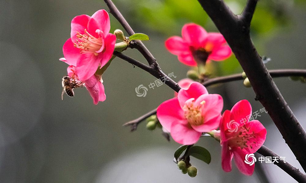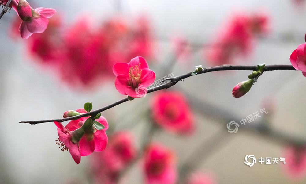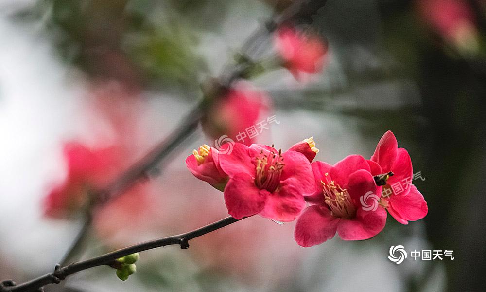 近期,随着重庆气候逐渐变暖,主城花卉园里的海棠花已悄悄开放,红彤彤的花朵,给冬日里的人们带来了浓浓的春意。(摄/凌舸智)