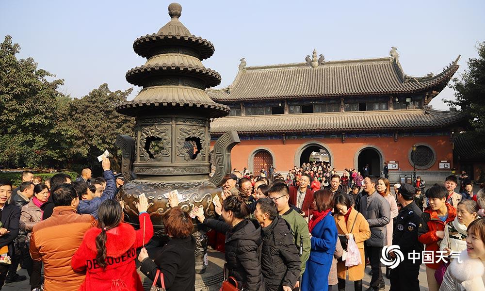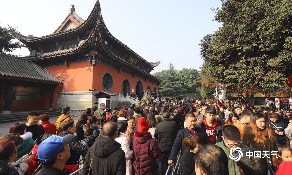 2019年2月5日是农历大年初一,重庆人有农历新年寺庙祈福的习俗,大批市民涌入华岩寺参加新年祈福,为自己为家人祈祷来年好运。(凌舸智/摄)
