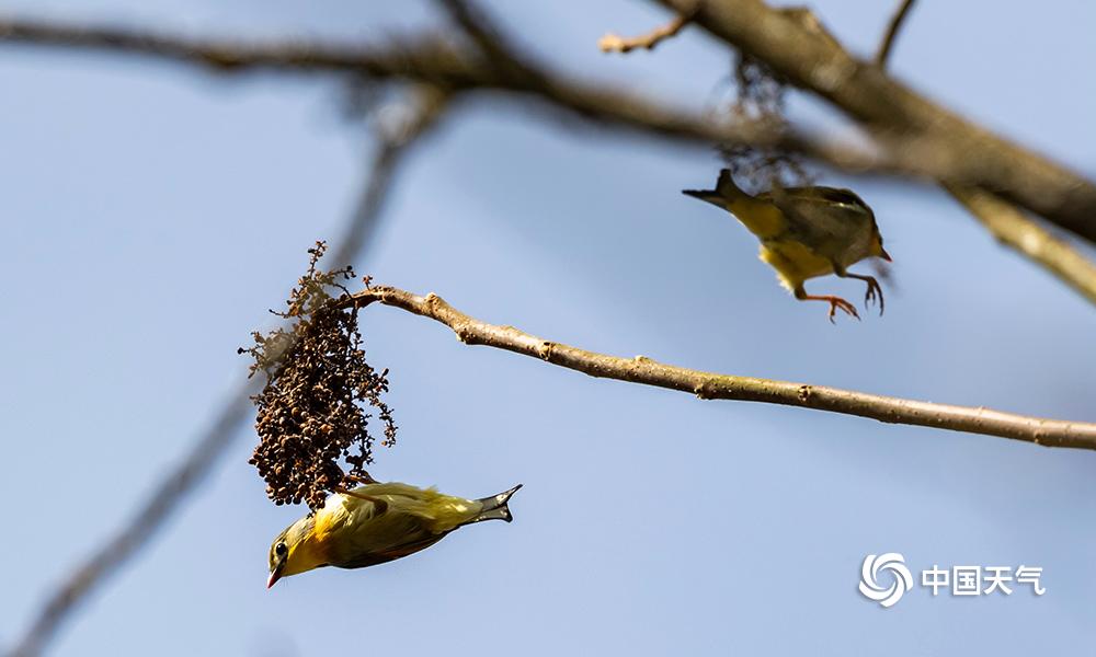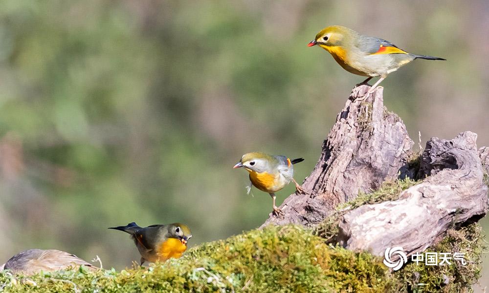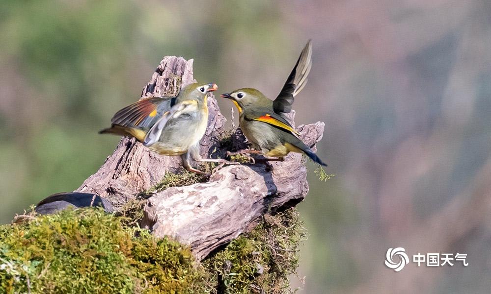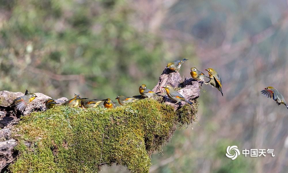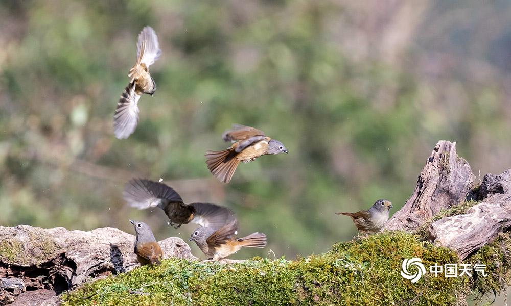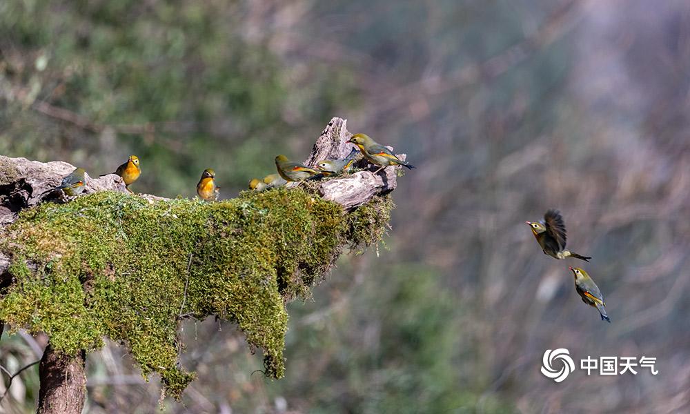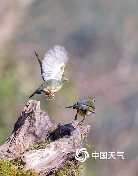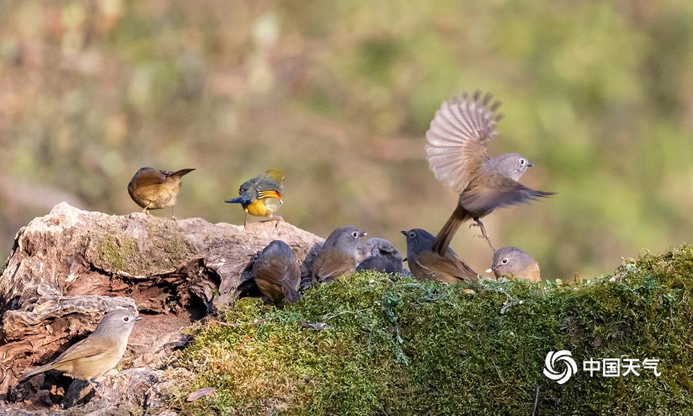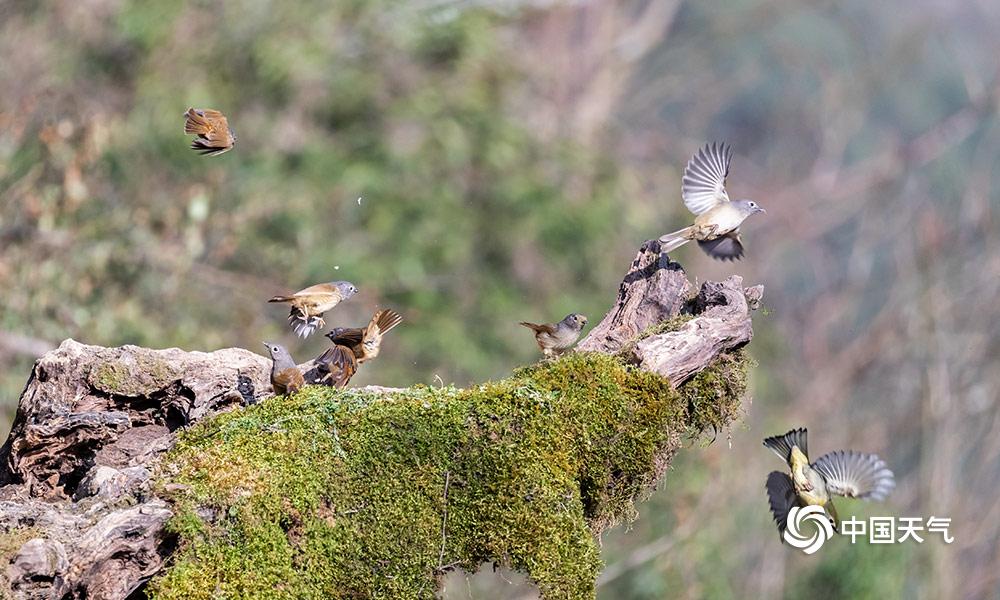 中国天气网讯 2月5日是立春后的第二天, 世界自然遗产金佛山景区阳光明媚,春意浓浓,各种动物在阳光下自由觅食、飞翔、嬉戏、打斗,享受春天的气息。(瞿明斌/摄)