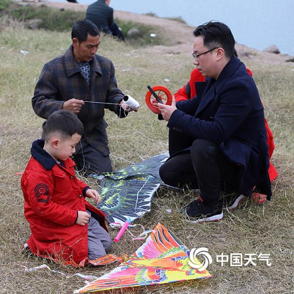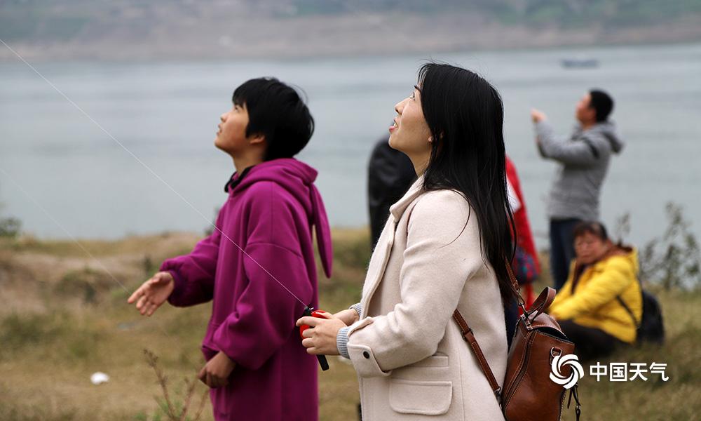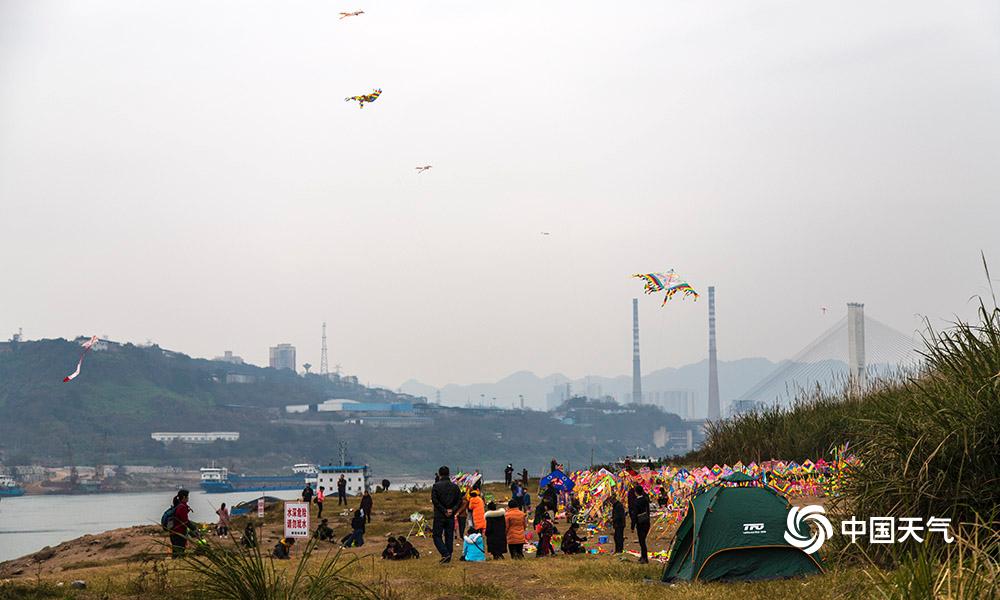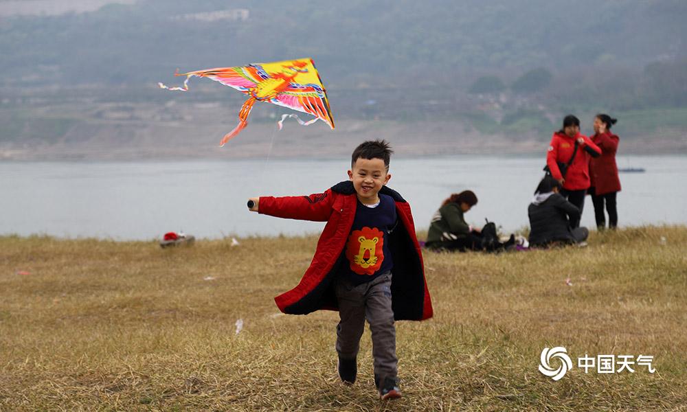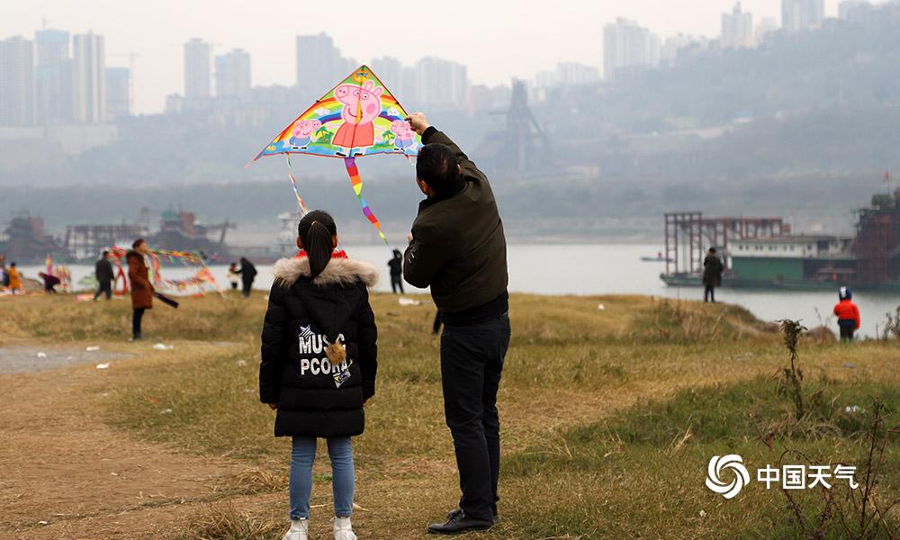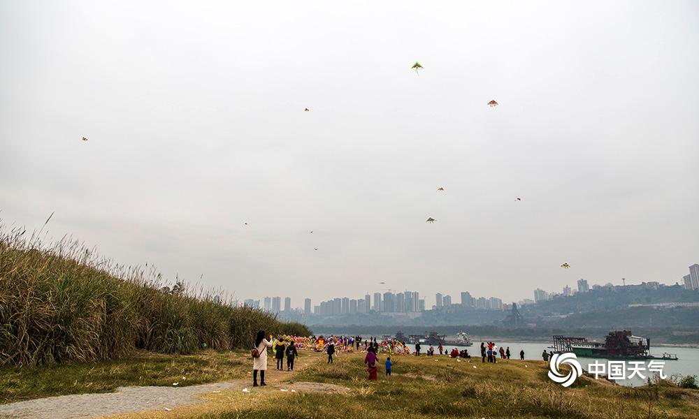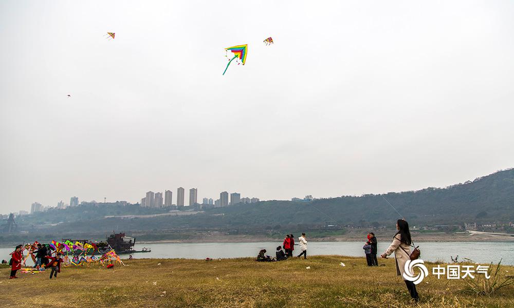 近日重庆天气偏暖,在长江岸边休闲的市民也逐渐增多。昨日(8日),不少市民来到巴滨路放风筝,欢度猪年新春。(凌舸智/摄)