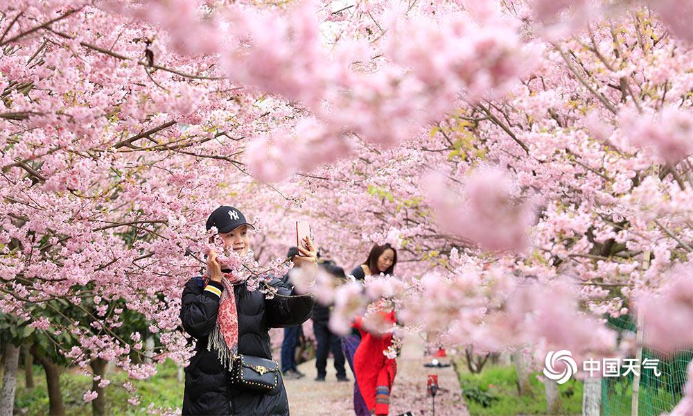 早春二月,重庆气温逐渐回升,各种鲜花陆续盛开。这两天,北碚农业公园早樱竞相绽放,满树粉色花朵显得格外浪漫,引得市民驻足留念,尽量享受春日美好。(秦廷富/摄)