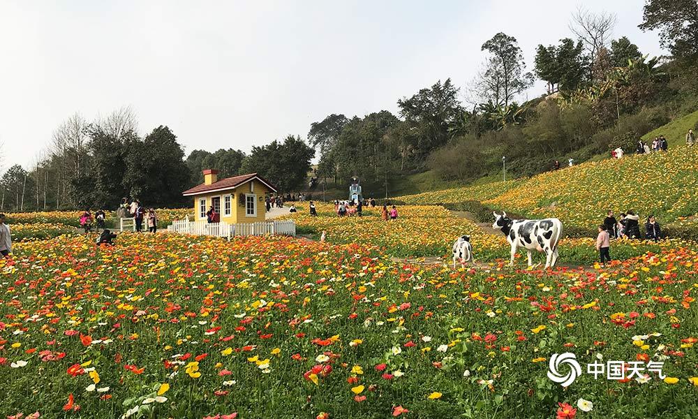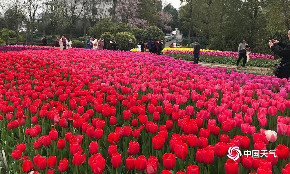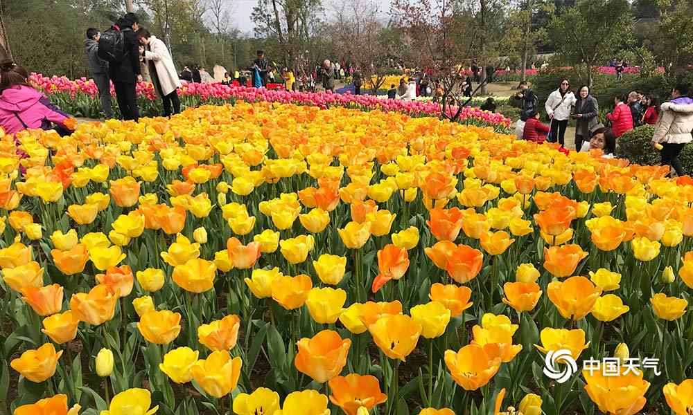昨日,重庆天气转好,各色春花尽显娇艳。在重庆长寿湖景区里,郁金香、虞美人、黄水仙形成的花海惊艳着前来赏花的游客。(摄/杨启帆)