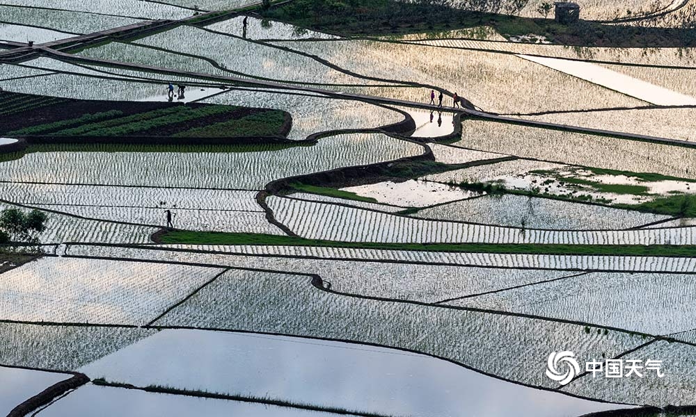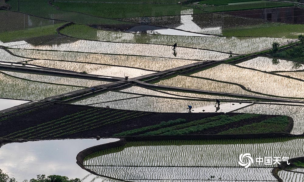 中国天气网讯 立夏将临,昼晴夜雨天气增多,重庆市南川区农民趁夜雨过天气晴好的大好时机,抢抓时节栽栽水稻做到满栽满插。他们劳作的身影在夕阳的映照下,把山乡田园绘成了一幅美丽的图画。(摄影:瞿明斌)