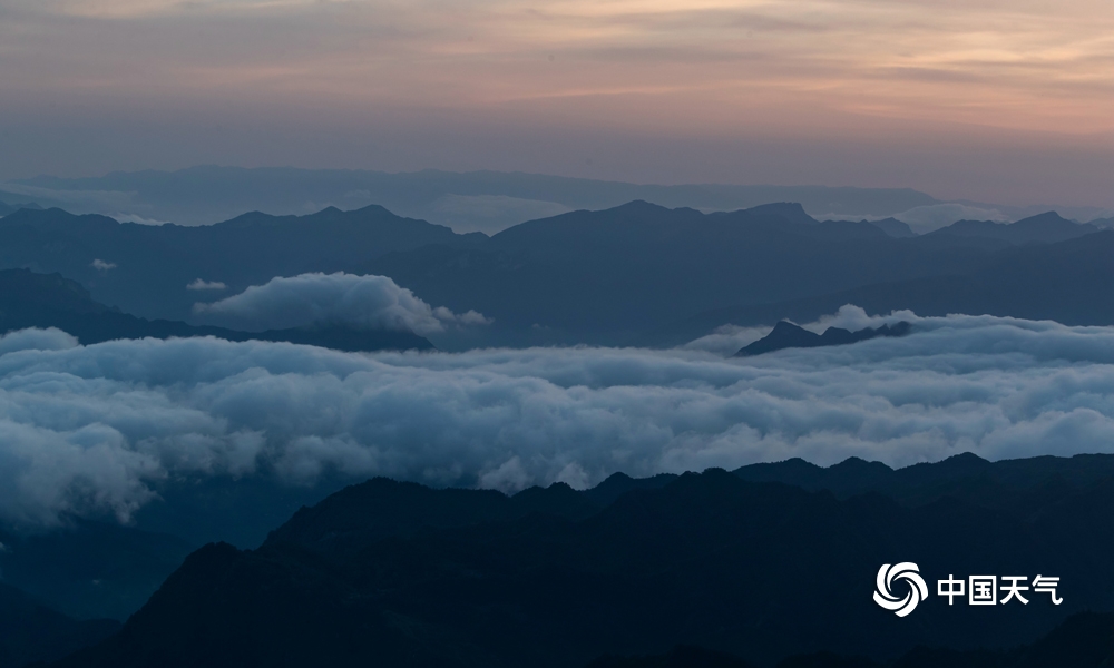 当日,以独特的喀斯特地貌跻身世界自然遗产地的金佛山,日出时分出现朝霞满天,云雾漫山景观。升腾的云雾在朝霞的映照下,给金佛山喀斯特山峦披上了神秘面纱,梦幻飘渺,美若仙境。