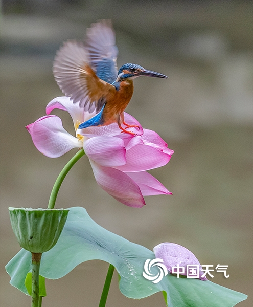 中国天气网讯 7月17日,重庆市大渡口区中华美德公园里一处荷塘内荷花绽放,四溢幽香,引来翠鸟伫立花尖,时而飞翔嬉戏,时而一展“好功夫”。(摄/瞿明斌)
