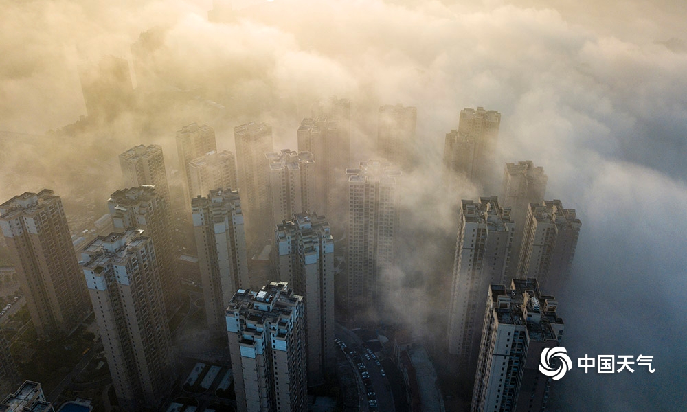 中国天气网讯 10日早晨,重庆合川高层建筑和远山在雾中若隐若现,宛如仙境。(凌舸智/图)