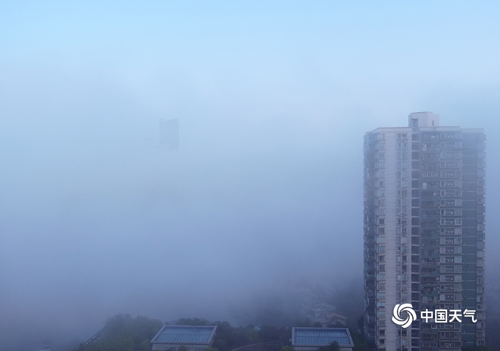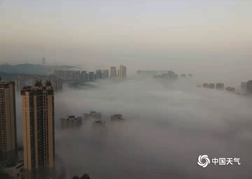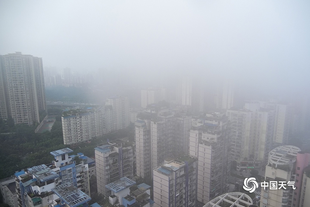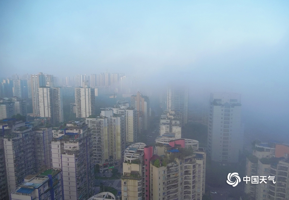 29日晨,重庆主城、江津、铜梁、梁平等地出现了雾,其中潼南、合川、荣昌、长寿、万盛、南川、垫江、涪陵、酉阳最小能见度仅100米,綦江不足100米。在雾笼罩下,重庆主城的高楼若隐若现。
