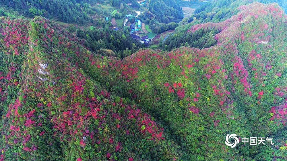 <p>中国天气网讯 秋色绚烂,景色如画.每年的这个时节,重庆酉阳板溪红叶争相斗艳,尽展红装风采,分外妖娆,漫山遍野,层林尽染,美不胜收,是户外驴友、游人和摄影爱好者前来赏红叶的最佳时期。(陈碧生 文/图)</p>