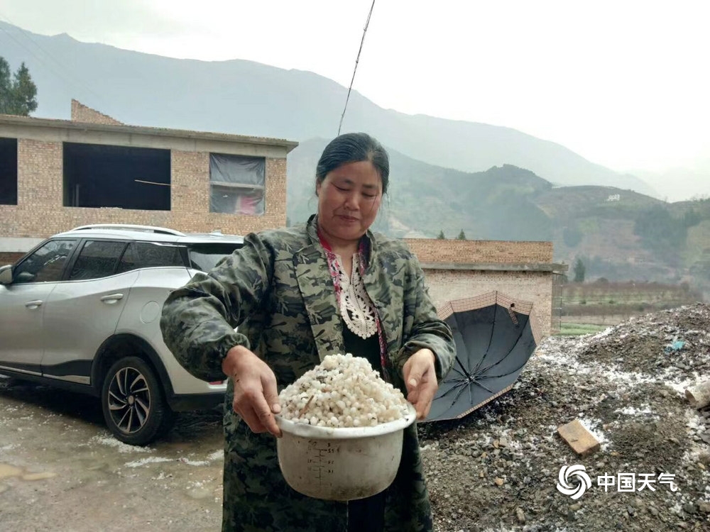 中国天气网讯 2月14日下午15时30分左右,重庆市巫山县曲尺乡柑园村遭遇短时强降水和冰雹袭击。据当地村民介绍,整个过程持续了30分钟左右。最大的冰雹个头大如汤圆。(供图/朱云平)