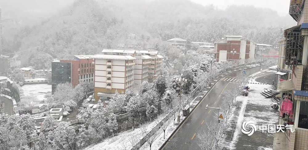 中到大雪席卷重庆城口 全县变身雪城(1/7)