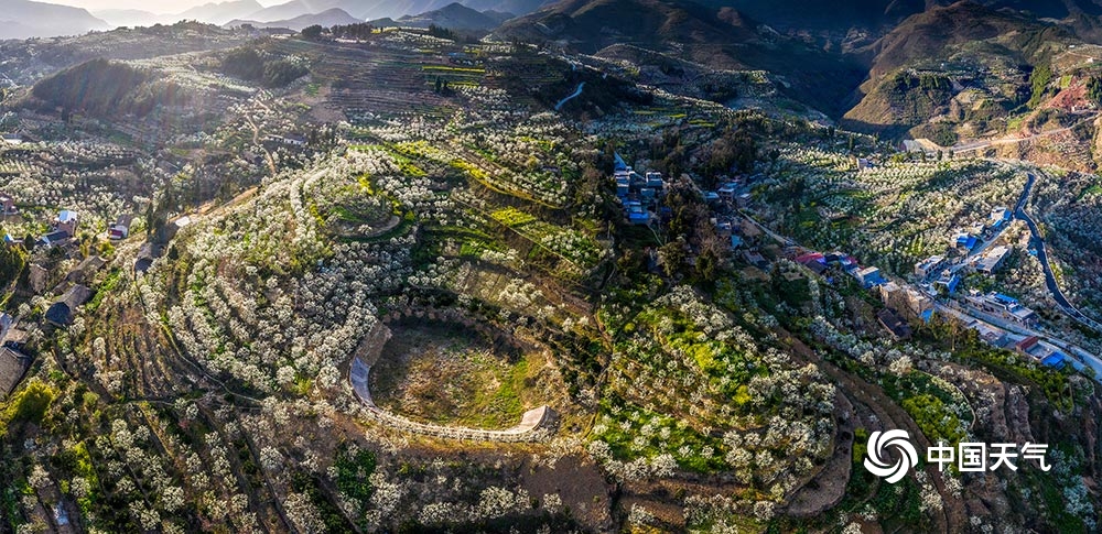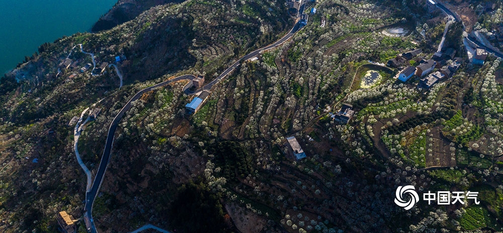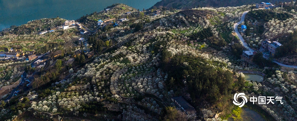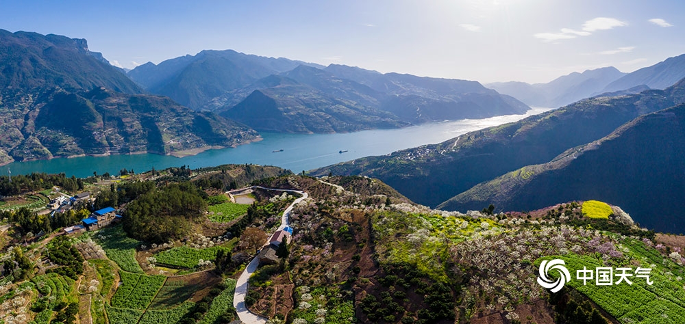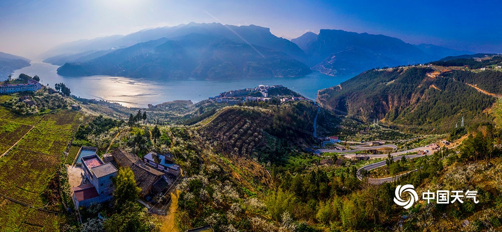 中国天气网讯 近日,重庆市巫山县八十里河谷地带,李花大面积盛开。曲尺乡各村,大片大片的李花洁白如雪,扮靓长江两岸,船只江中航行如在花间穿梭。(图/朱云平)