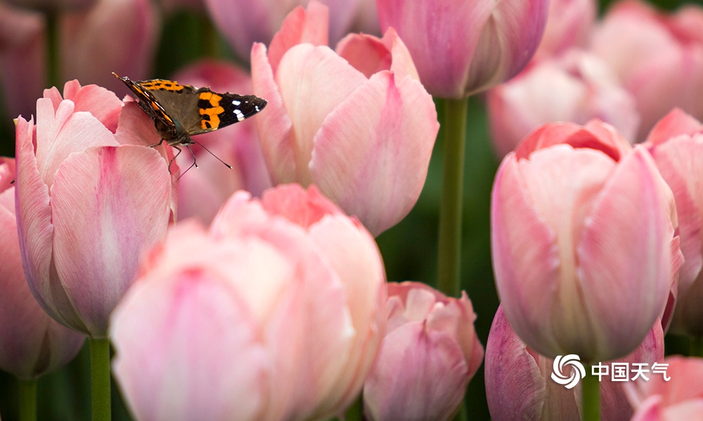 中国天气网讯3月17日,重庆阳光明媚,南山植物园内五颜六色的郁金香竞相绽放,争奇斗艳,绚丽多彩,引蜜蜂、蝴蝶纷至沓来,驻足采蜜。(凌舸智/图文)