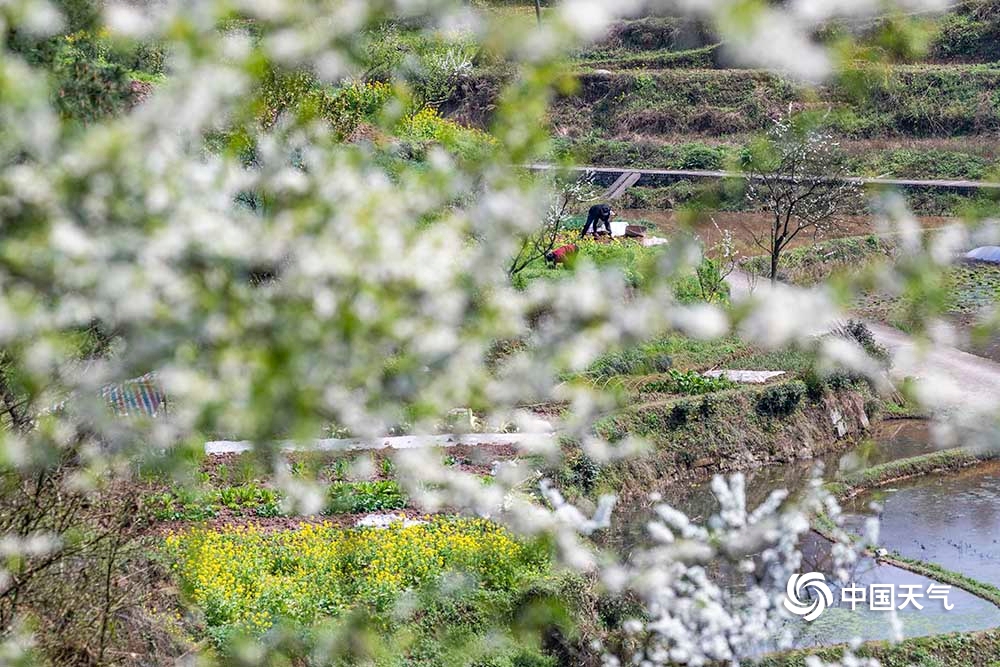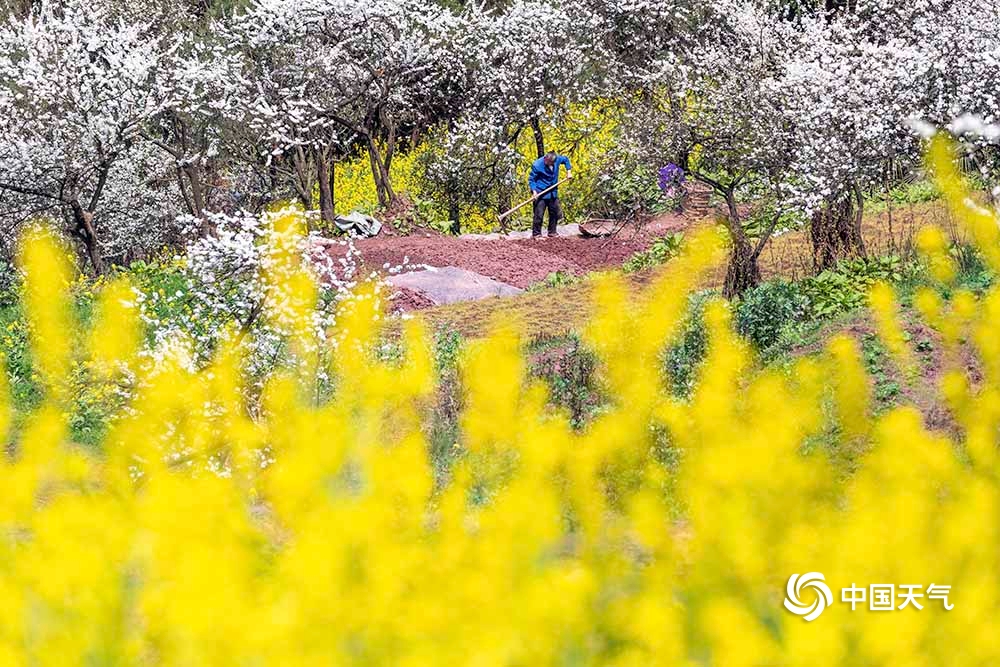 春分时节,气温回升春雨到来,重庆市南川区田野里李花、梨花、桃花、油菜花开得姹紫嫣红,处处春意盎然生机勃勃,农民在开满鲜花的田间地头挖土、育秧、播种,抢耕抢种不误农时。(瞿明斌/图文)