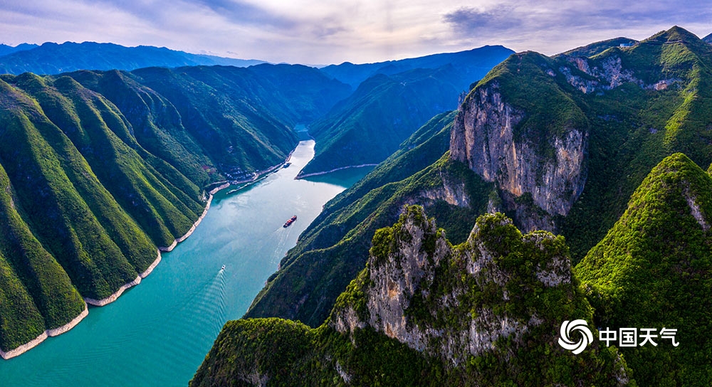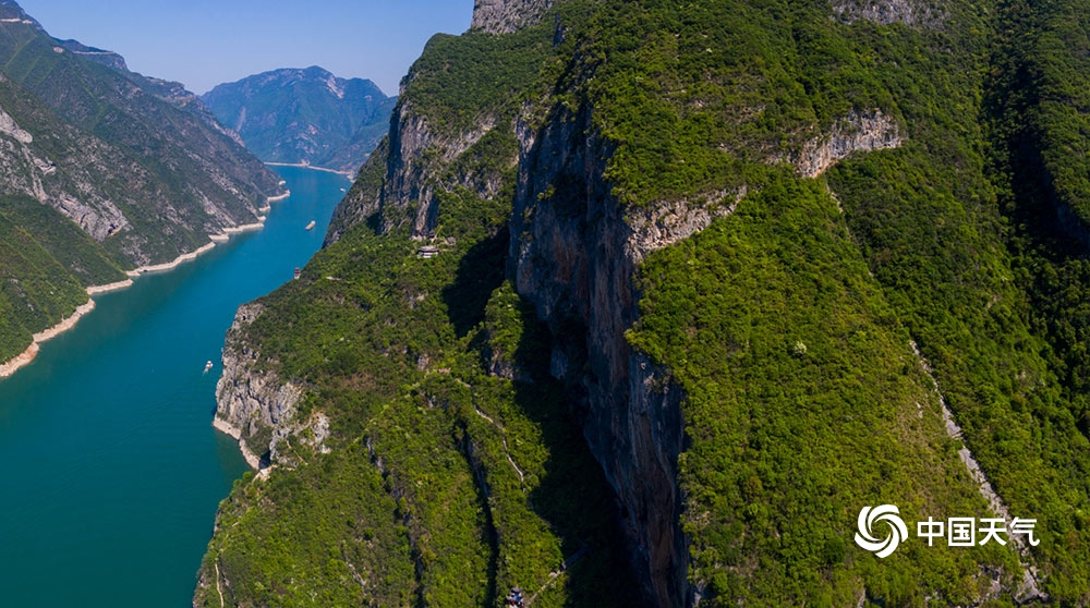 中国天气网讯 四月的重庆巫山,春和景明,峡江两岸,植被葱郁。摄影师用航拍技术拍摄巫峡春色,青山绿水间,船行巫峡奇峰间,张张图片美如画卷。(图/朱云平)