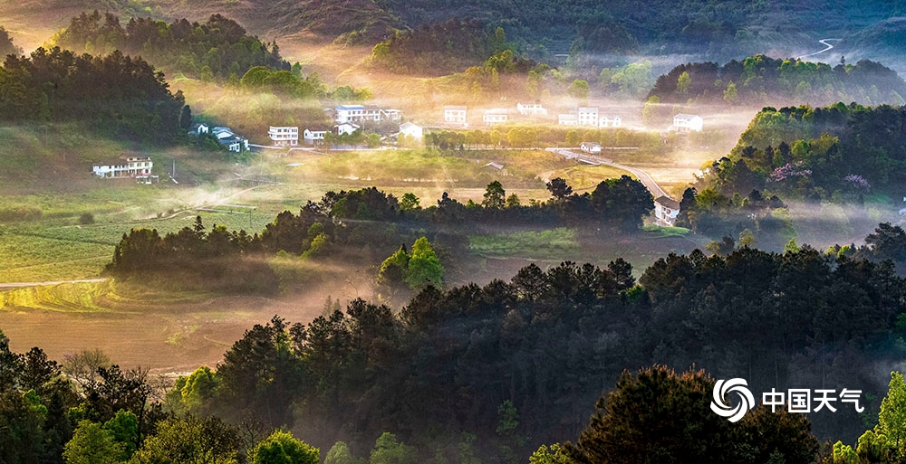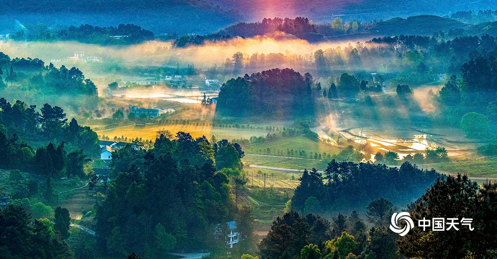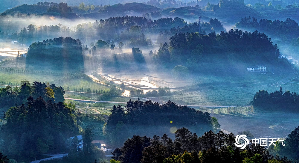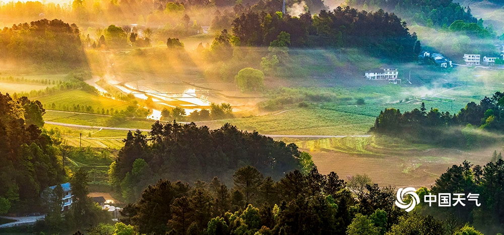当日,轻纱薄雾在房前屋后漫舞流淌,阳光透过薄雾缠绕的森林出现丁达尔现象,美能美奂的“耶稣光”映照在农村人居环境整治后的重庆市南川区大观镇铁桥村、木凉镇汉场坝村田间地头,呈现出一派田园美、村庄美、生活美的祥和生态画卷。(瞿明斌/图文)