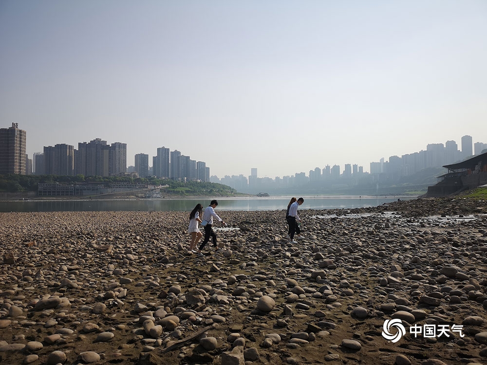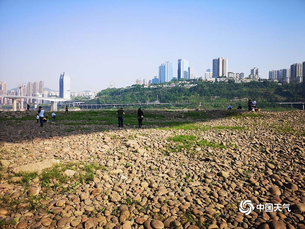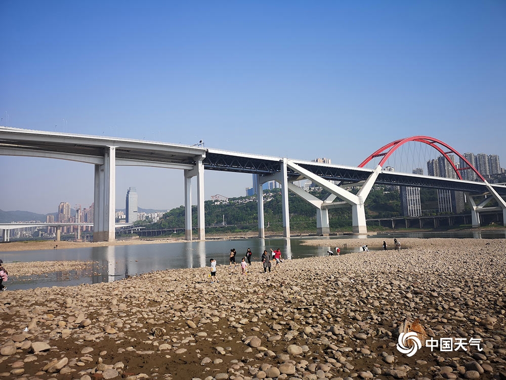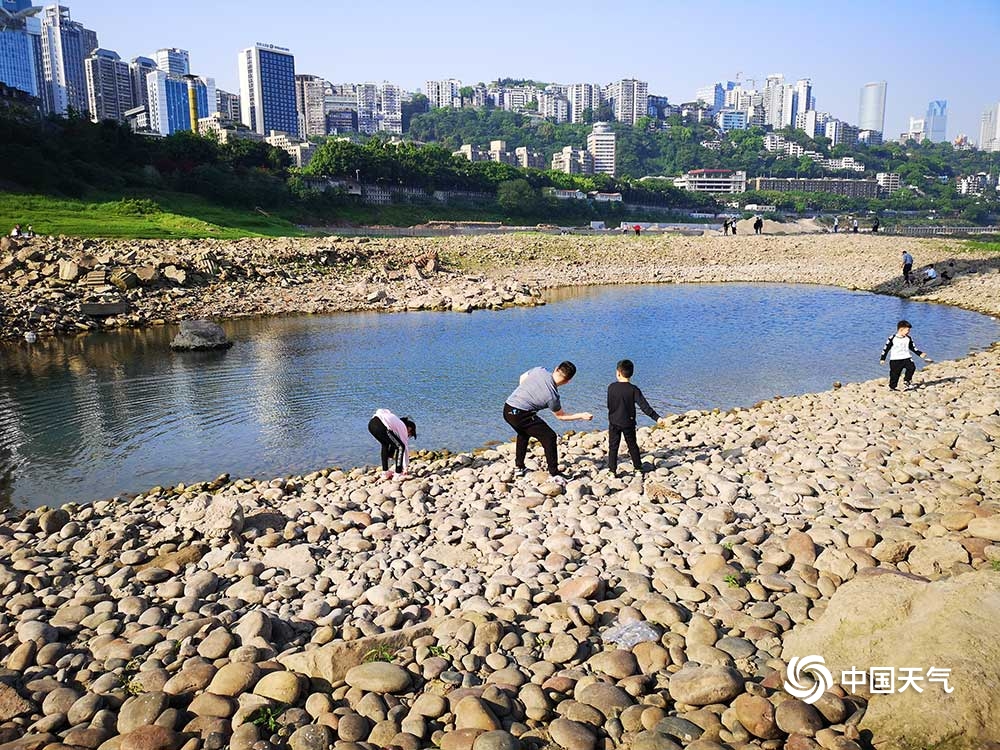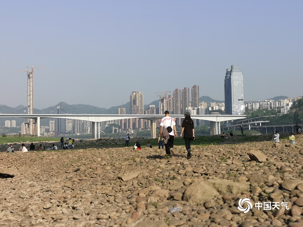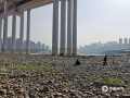 近日,长江重庆段迎来枯水期,位于渝中区的珊瑚坝出现大面积河床裸露。昨日(26日),阳光灿烂,不少市民来此晒太阳、戏水玩耍。(图/杜陈洁)