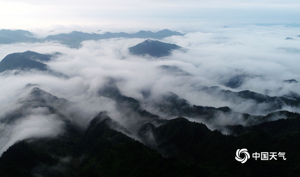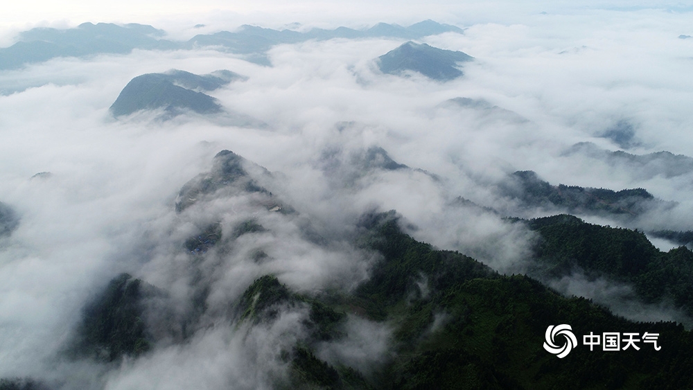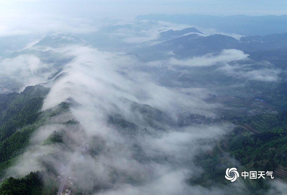 中国天气网讯 5月5日,重庆酉阳土家族苗族自治县涂市镇和毛坝乡境内出现山间晨雾,弥漫着整个山村,宛如一幅水墨画。(图文/陈碧生)
