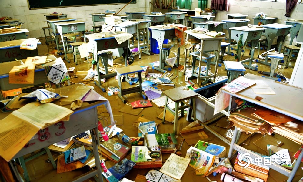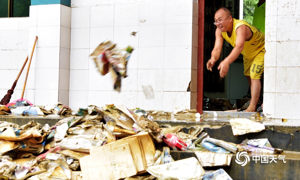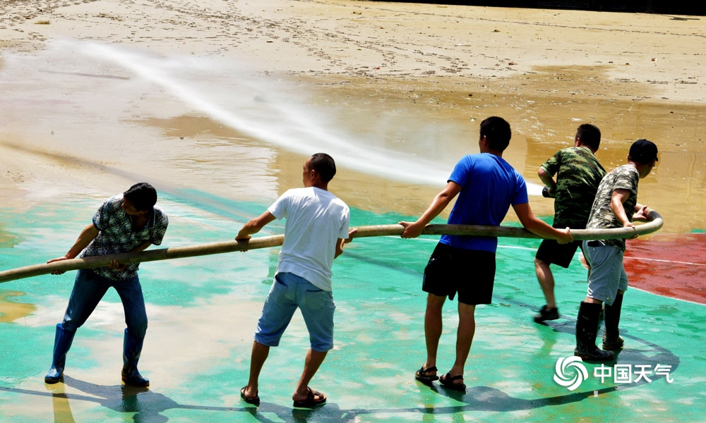 6月14日,重庆市酉阳土家族苗族自治县铜鼓镇政府部分领导干部以及该镇中学全体教师正在忙碌着清理校园内的淤泥。6月13日凌晨,重庆市酉阳土家族苗族自治县遭受特大暴雨袭击,部分乡镇雨量达到300多毫米。暴雨造成当地农田被淹,部分街道以及集镇和学校被淹。目前,该县正在有序开展灾后自救。(陈碧生文/图)