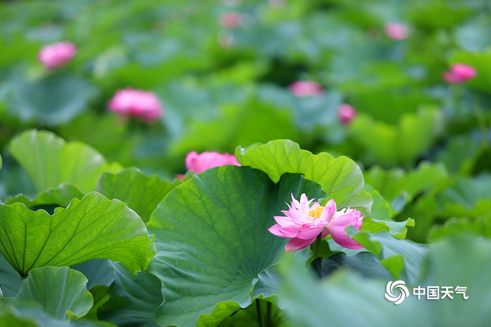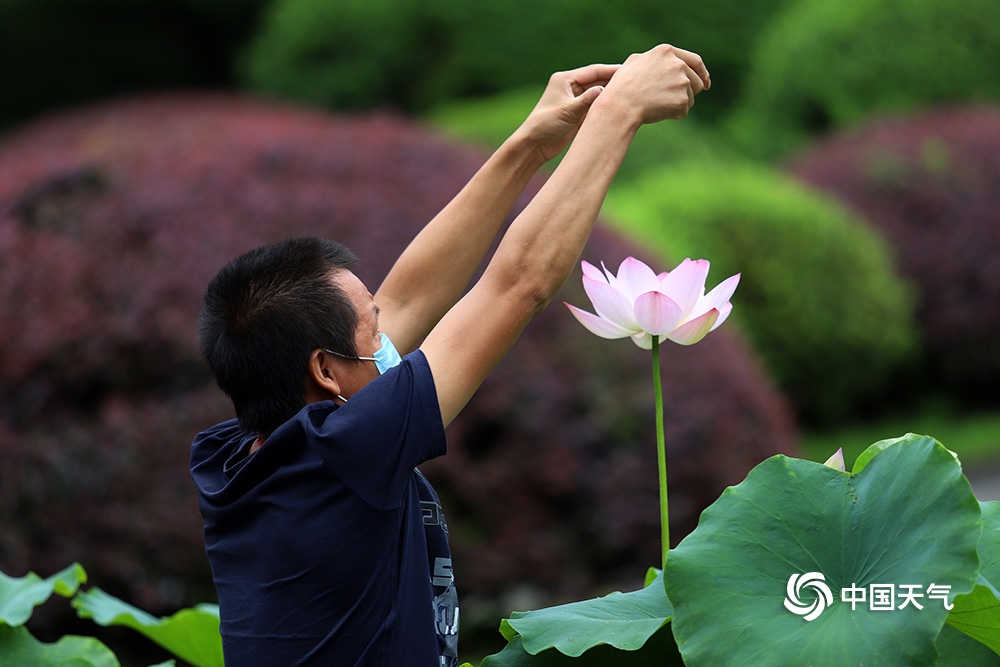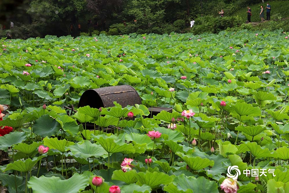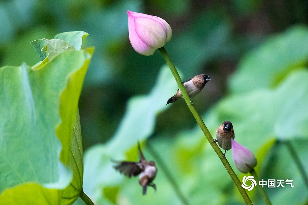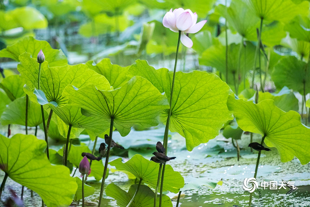 6月20日,重庆华岩寺与七步荷塘的荷花绽放,鸟儿在荷塘嬉戏,荷花盛开如画,周末吸引不少市民前来赏花拍照。(图/凌舸智)