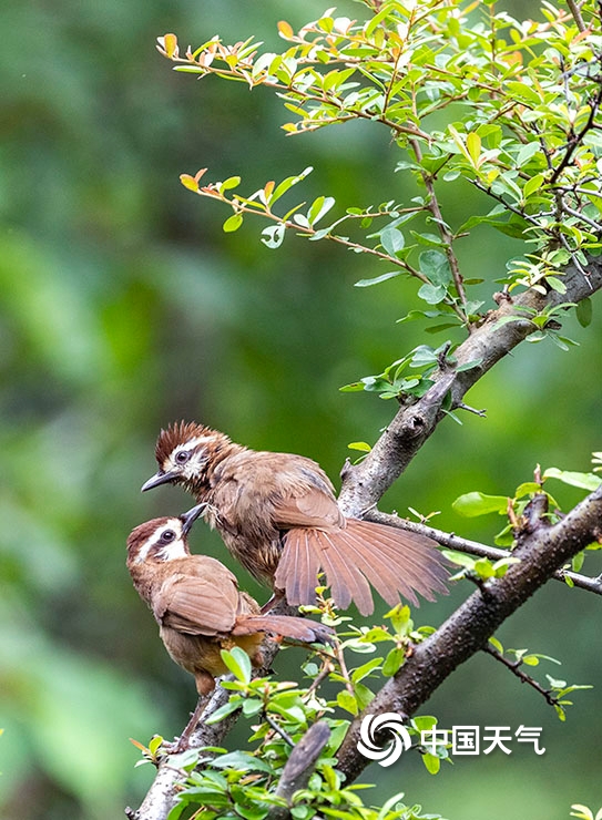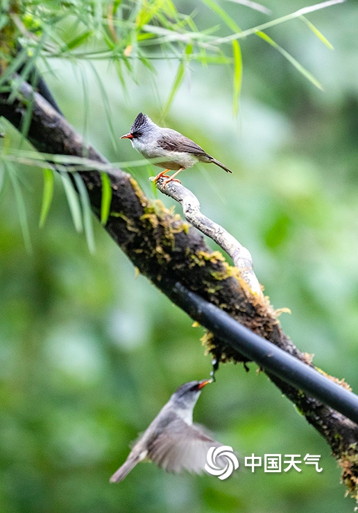 中国天气网讯 位于重庆市南川区境内的世界自然遗产地金佛山是鸟儿的乐园。据《金佛山生物资源综合考察技术报告》显示,金佛山有鸟类228种,约占全国的七分之一。金佛山独特的生态环境和立体气候,是各种鸟儿繁衍生息的理想之地,每年的七八月是栖息在金佛山的各种鸟儿最活跃季节。图为8月15日在重庆市南川区金佛山景区拍摄的鸟儿。(图/瞿明斌)