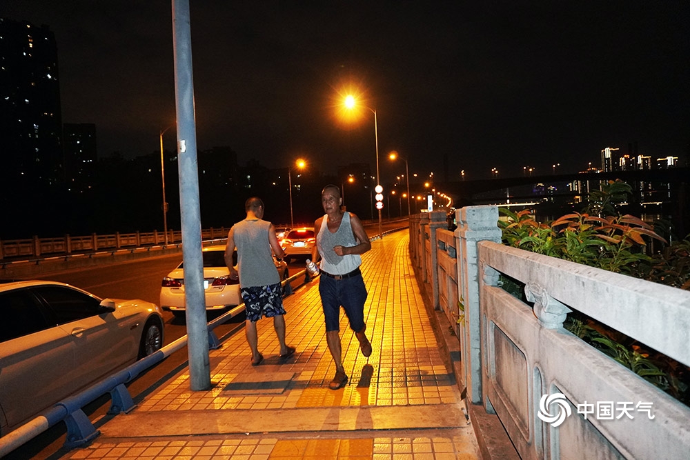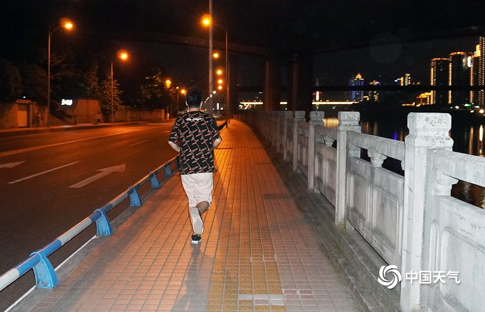 中国天气网讯 周末来临,正是锻炼好时间,重庆这两天的气温却持续攀升、高温不断。尽管如此,却难挡市民锻炼热情。8月22日夜幕降临后,不少市民选择来到北滨路,沿江夜跑进行锻炼。(图/杜陈洁)