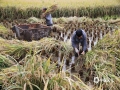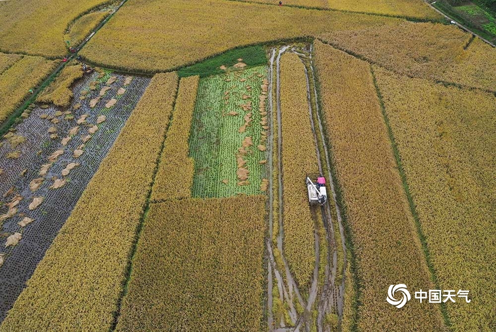 中国天气网讯 连日来,重庆市黔江区持续降雨,给该区马喇贡米稻的收割带来了影响。9日,雨停后,村民积极抢收贡米稻,确保颗粒归仓。(杨敏/摄)