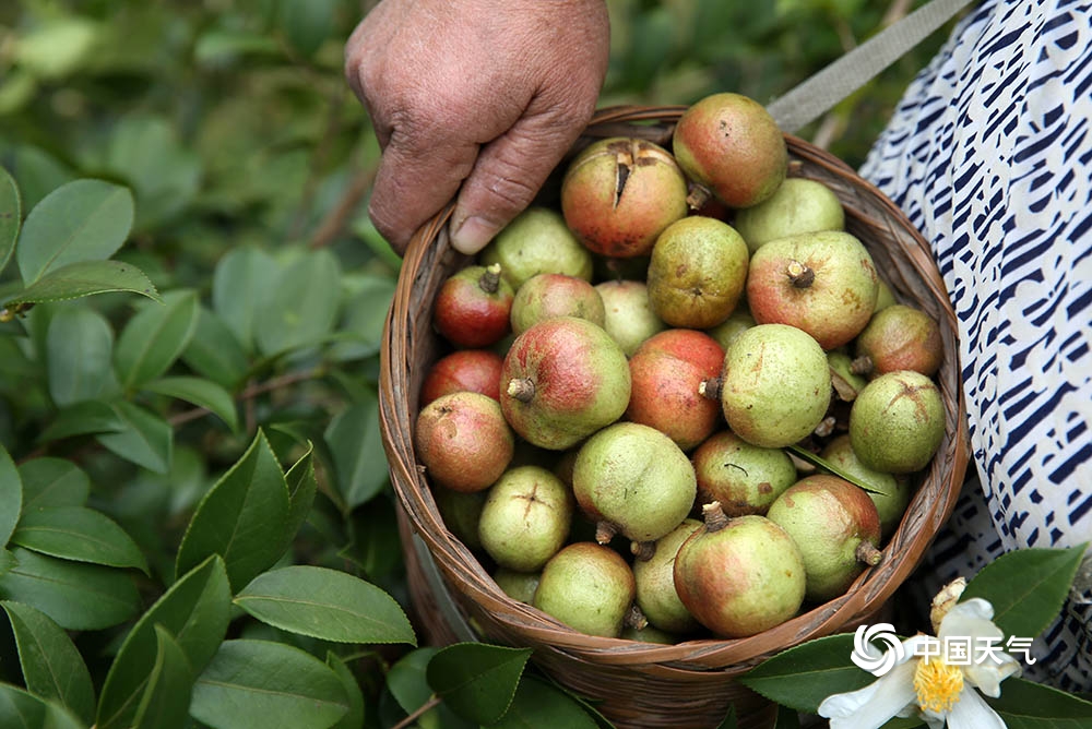 中国天气网讯 金秋时节,重庆市黔江区中塘镇巴弩农业股份合作社胜利村油茶基地的2500亩油茶进入采摘季,饱满的油茶果挂满枝头,漫山飘逸着油茶果的清香。连日来,当地出现持续多日的晴好天气,村民积极抢摘、抢晒油茶果,确保增产增收。