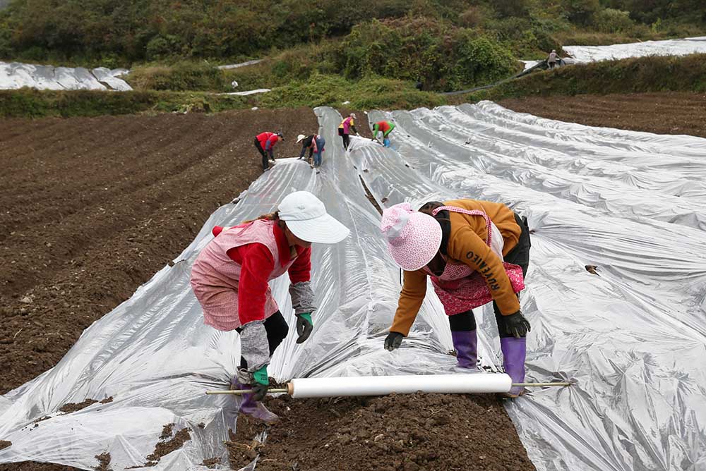重庆黔江:持续天晴好秋种 高山村民忙种羊肚菌