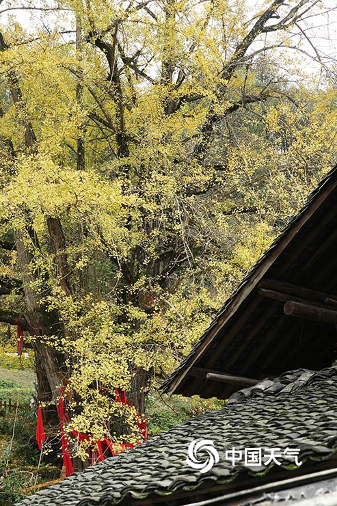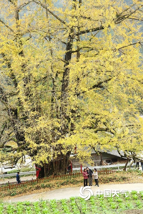 <p>中国天气网讯11月3日,重庆黔江区金溪镇金溪社区有棵千年银杏树,目前已满是金黄,吸引了众多游客前来游览观光。(杨敏/摄)</p><p><br/></p>