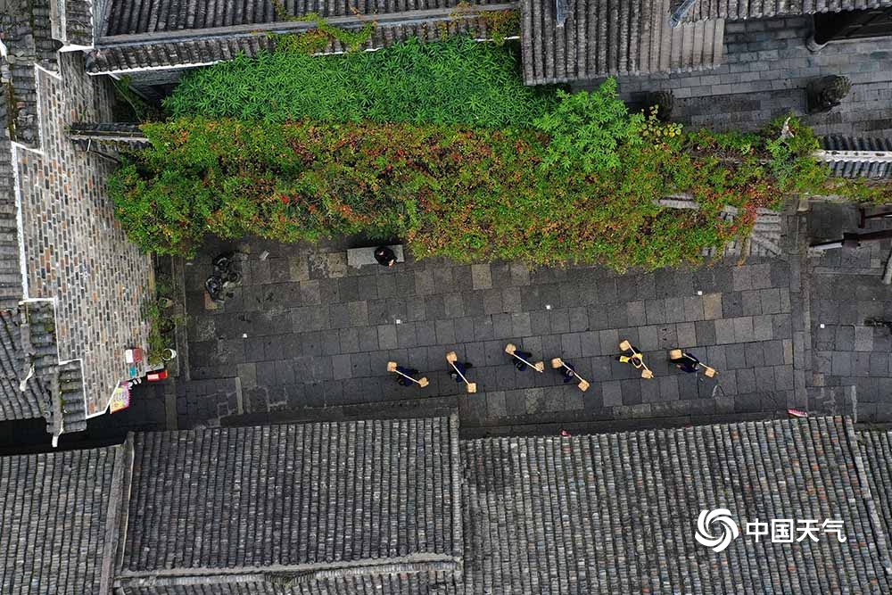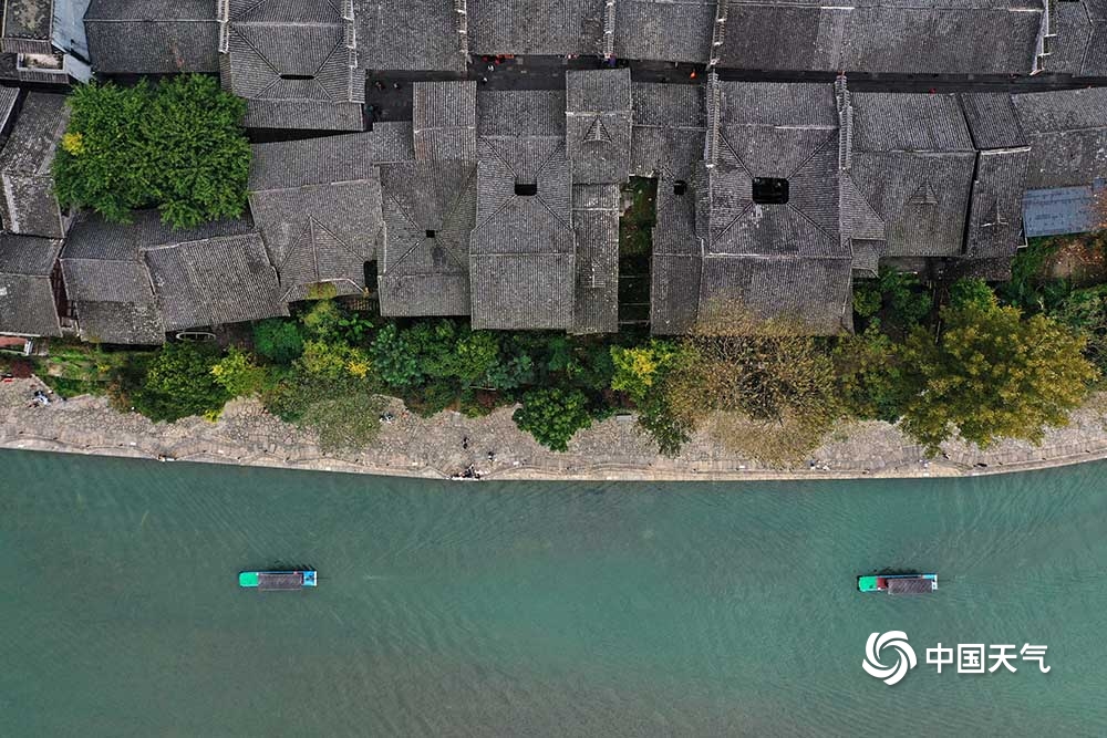 中国天气网 重庆市黔江区濯水镇是一个集土家吊脚楼群落、水运码头、商贸集镇于一体的千年古镇,巴楚文化、土家文化、大溪文化和华夏文明在这里交织、融合和积淀,形成了独特而丰厚的文化底蕴,这里的建筑实现了土家族吊脚楼与徽派建筑的完美结合2014年被列为第六批中国历史文化名镇。金秋时节,濯水古镇彩叶掩映,碧水环绕,秋色宜人,吸引了众多游客前来游玩、赏秋。(图/杨敏)