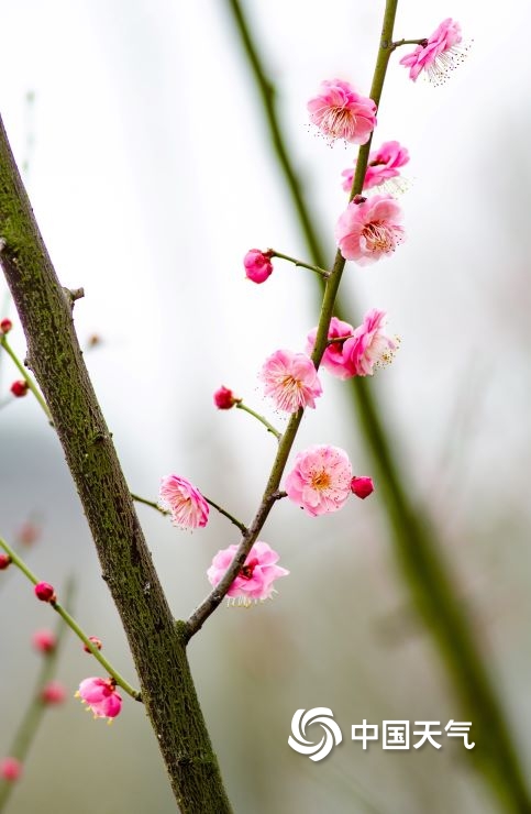 中国天气网讯 元旦新年,山城重庆的红梅、海棠花都萌发出了红色的花苞,更有一些花苞已经绽放出了粉红色的花朵,为虎年新年来临增添了喜庆的色彩。(摄/冉小军)