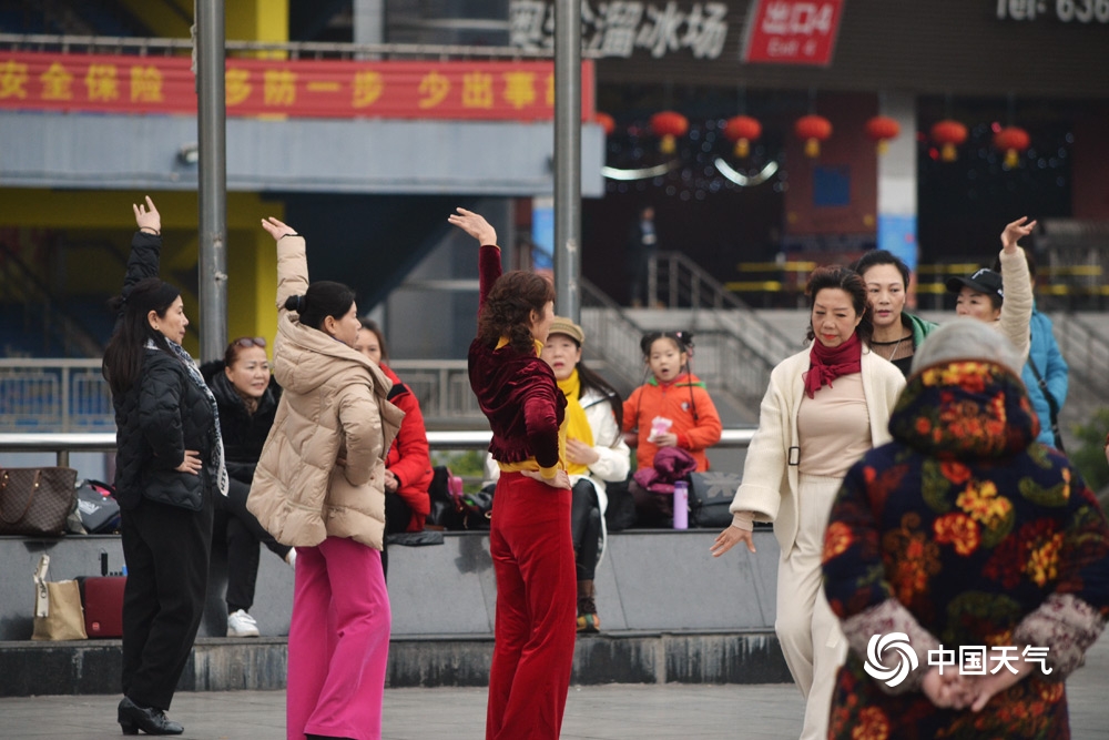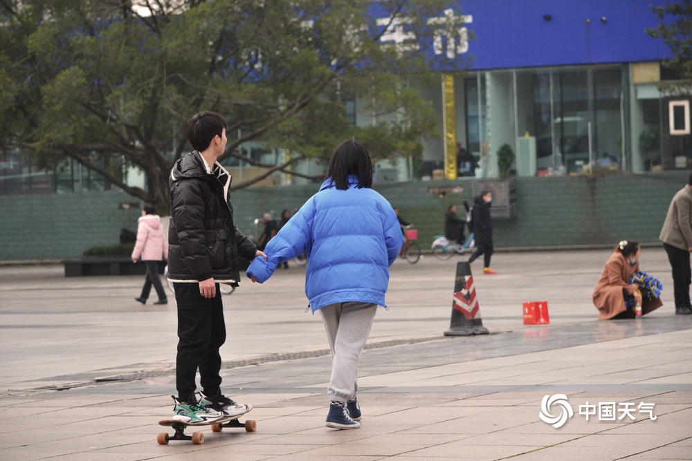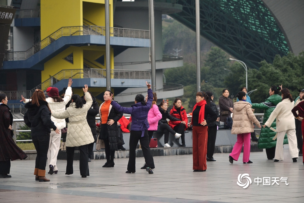 中国天气网讯 昨日(11日)重庆中心城区雨水停歇,午后阳光短暂造访,在重庆市奥林匹克体育中心的五环广场上,不少市民趁着不错的天气外出运动,放风筝、打陀螺、跳广场舞、滑滑板……大家冬日锻炼热情高!(图/李晓蓉)