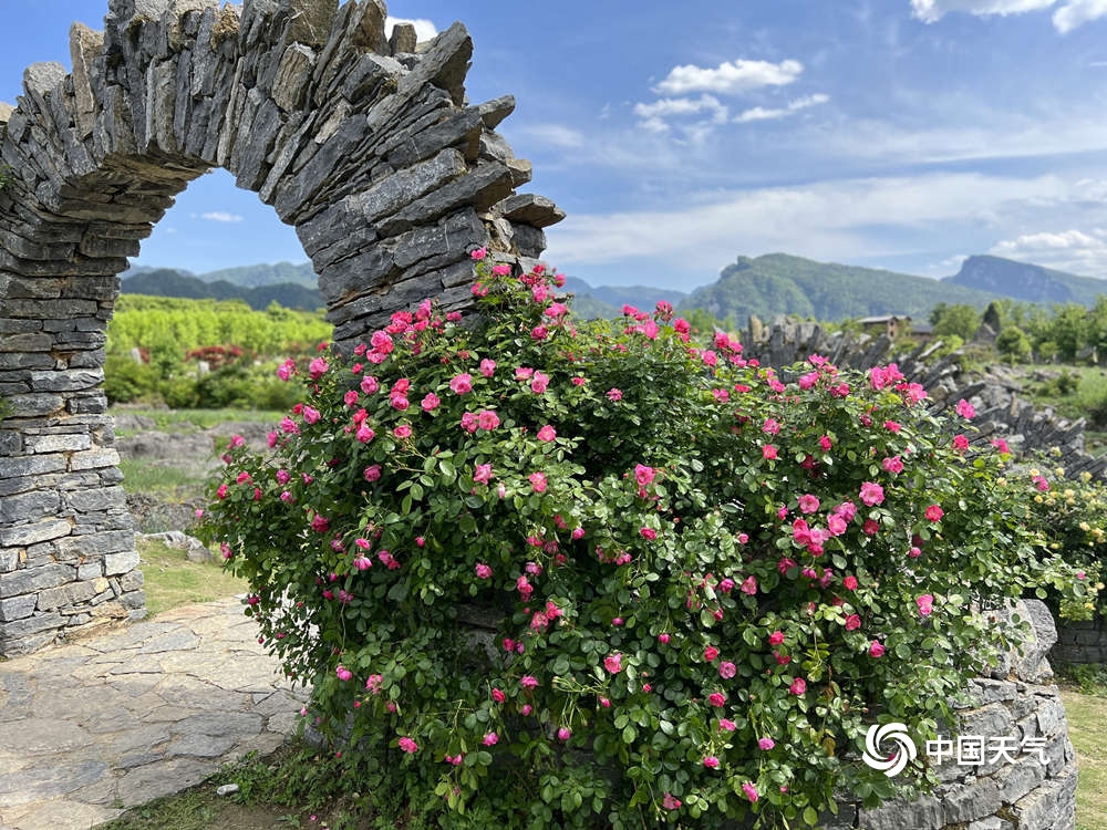 中国天气网讯 近日,位于重庆酉阳的叠石花谷景区园内月季、七姊妹等相继盛开,如梦如幻。唯美浪漫的鲜花与跨越千年的神秘叠石文化相互辉映,相得益彰。(图文/冯珂)