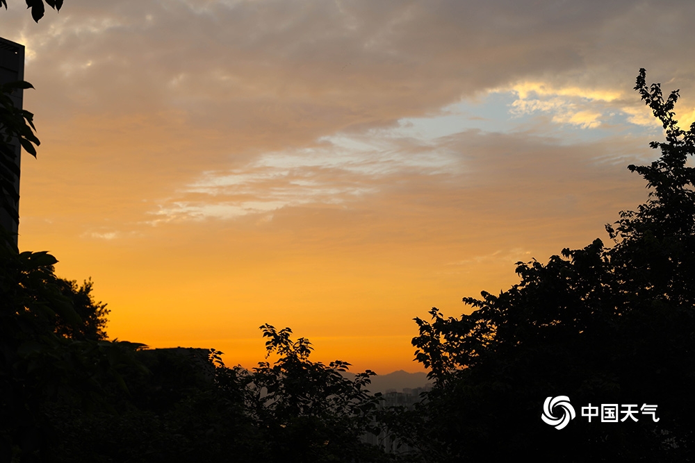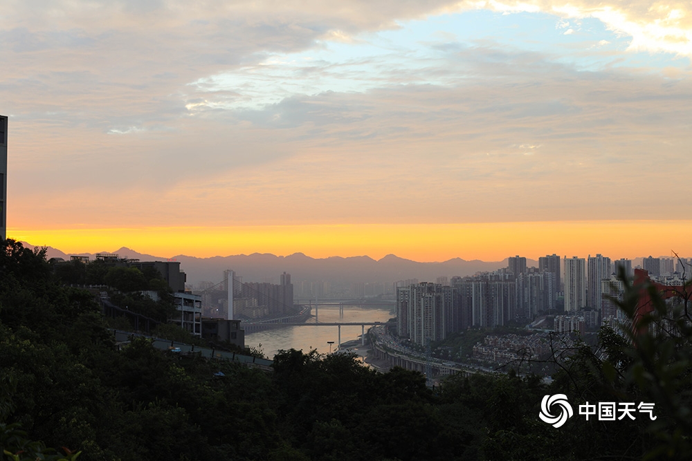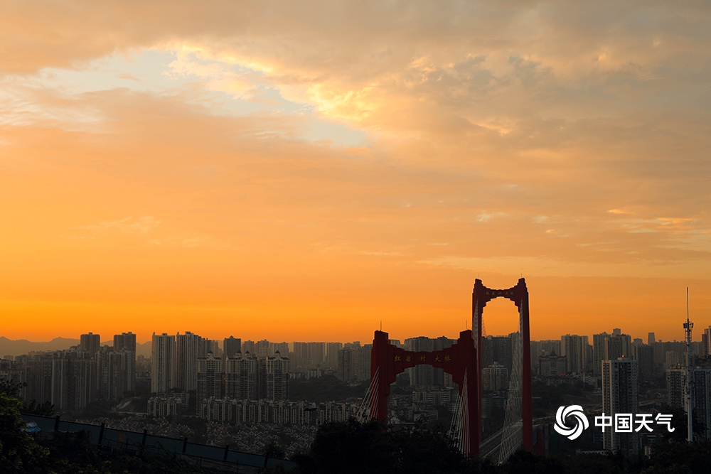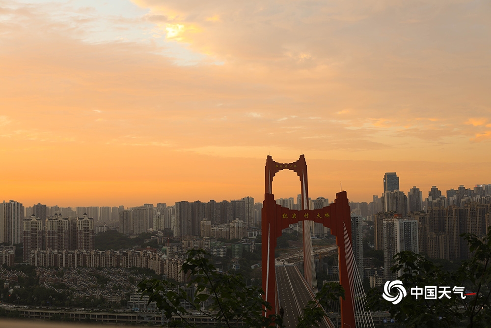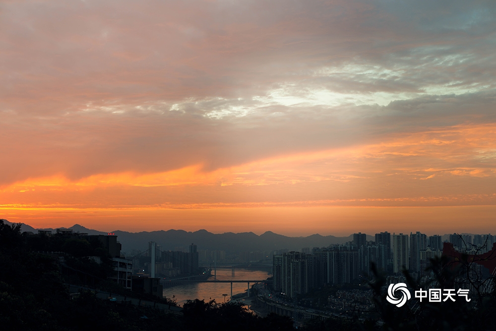 中国天气网讯 昨日(23日)傍晚,重庆天边出现浪漫橘色晚霞,让人陶醉。这么美的晚霞,你拍到了吗?(图/曹凯)